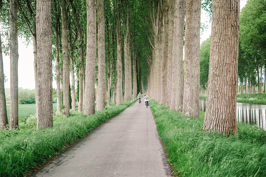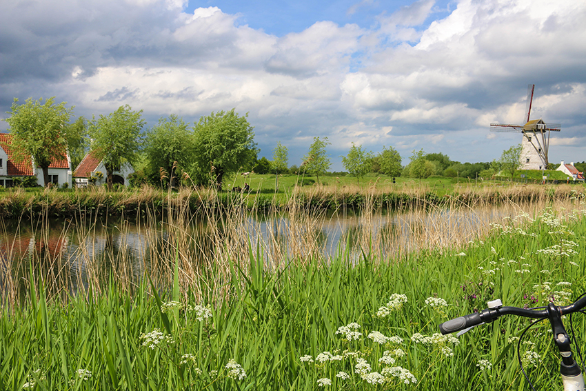 Dass Radfahren nie zu meinen liebsten Hobbys gehören wird, ist klar. Trotzdem sollte man sich in Flandern unbedingt auf einen Drahtesel schwingen, da man sonst die wirklich grandiose Landschaft verpasst. Die Flämische Region ist nämlich von saftigen Feldern, Flüssen, Kühen und anderen Getier am Wegesrand, endlosen Alleen, Windmühlen und fruchtbare Marschen geprägt. Hier findet man also eine große Vielzahl an Pflanzen, Blumen und Bäumen, wo nicht nur der Naturliebhaber große Augen macht. Wir radelten also relativ gemütlich entlang des Fahrradweges von Damme nach Brügge und obwohl ich während der Fahrt doch das ein oder andere Mal geflucht habe – wir erinnern uns, radeln ist nicht so meins 😉 – kann ich euch diese Strecke nur ans Herz legen!