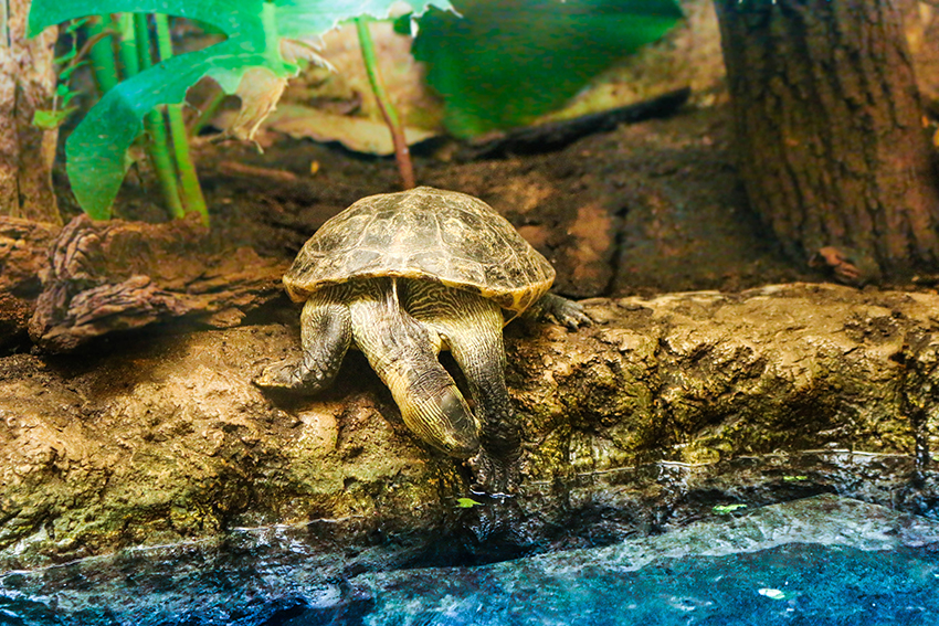 Mein persönliches Highlight im Aquarium waren zwar die faszinierenden Quallen, aber auch die Krokodilhalle ist nicht zu verachten. Über eine Holzbrücke kann man die tropische Landschaft mit ihren Ganges-Gaviale, Schildkröten und Brillenkaimane beobachten. Ein besonderer Anziehungspunkt für die Kleinen war auch das Streichelbecken. Nein, dort können natürlich keine Krokodile gestreichelt werden, aber immerhin die beliebten japanischen Koi-Zierkarpfen, die zutraulich an die Wasseroberfläche schwimmen und sich berühren lasen.