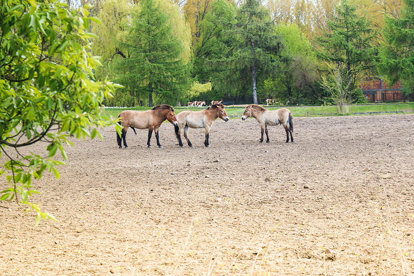 Gleich nach dem Frühstück machten wir uns auf Richtung Friedrichsfelde, wo der 160 Hektar große Tierpark – übrigens der größte Europas! – beheimatet ist. Auf dem ausgedehnten Gelände des Schlossparks Friedrichsfelde leben derzeit rund 8700 Tiere, was bedeutet, dass man definitiv viel Zeit für den Besuch einplanen sollte. Die Freianlagen für Huftierherden machten wir aufgrund des wirklich miesen Wetters in der Früh eher im Schnelldurchlauf und suchten Unterschlupf im Alfred-Brehm-Haus. Auf einer Fläche von rund 5.300 m² lassen sich dort Raubtiere wie Pumas, Leoparden und Löwen ansehen, aber auch ein Spaziergang über den Baumwipfelpfad in der Tropenhalle ist hier möglich. Soweit ich mitbekommen habe, soll das Alfred-Brehm-Haus noch dieses Jahr modernisiert werden. Die Tropenhalle soll zukünftig das Thema südostasiatische Inselwelt aufgreifen. Der tropische Charakter soll durch zusätzliche Baumbepflanzungen, dichte Unterflur-, Kletter- und Hängepflanzen verstärkt werden. Auch die Raubkatzen sollen auf ihre Kosten kommen, weswegen das Haus um ein weitläufiges Tigeraußengehege – welches im Innenhof des Hauses entsteht und damit die bisherigen Gehege und Besucheraußenbereiche zusammenfasst – erweitert werden. Nachdem der erste Regenschauen dann abgeklungen war, marschierten wir vorbei an den Dickhäutern und Giraffen Richtung Affenhaus, wo wir uns erstmal an einem der Kioske eine Stärkung gönnten. Curry-Wurst, wie sollte es auch anders sein! Die „Berglandschaft“ – mit den hauptsächlich heimischen Tieren – ließen wir aus und marschierten vorbei an Pferden, Ochsen und der Fasanerie zum Krokodilhaus. Ein kurzer Aufenthalt dort, ehe es zurück zum Ausgang ging. Obwohl wir sicher 5 Stunden im Tierpark verbracht hatten, haben wir nicht alles gesehen und hätten wohl noch gut 2 Stunden dranhängen müssen, um den Park komplett zu erkunden. Daher: Viel Zeit für den Tierpark einplanen!