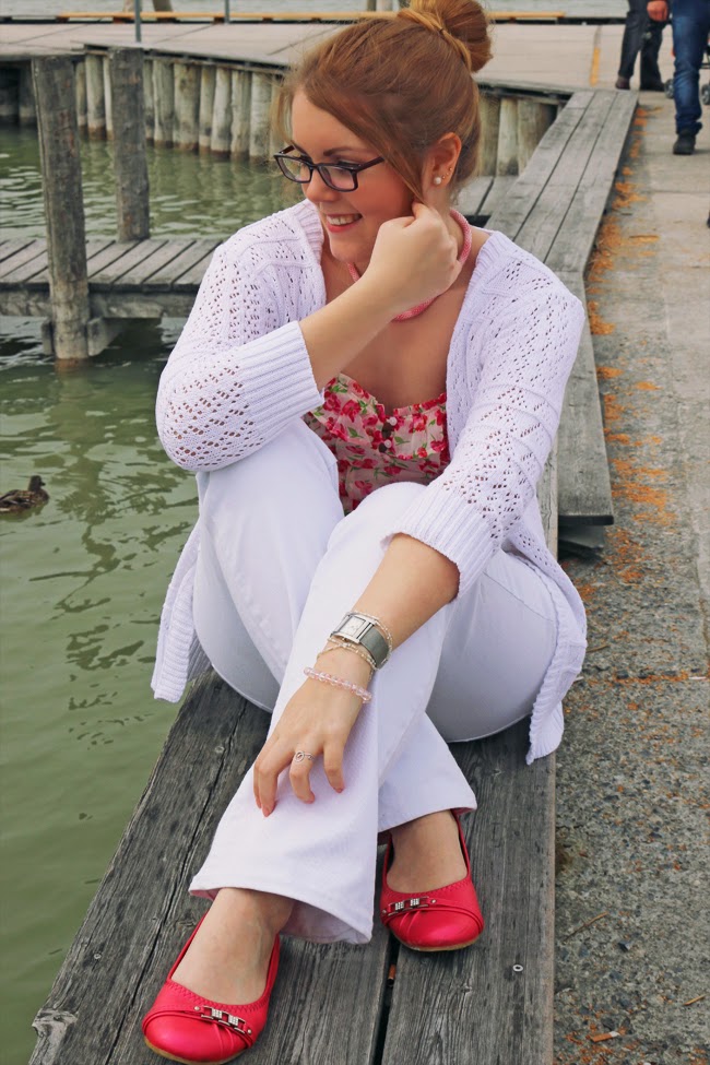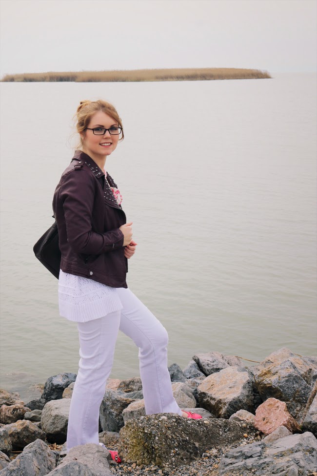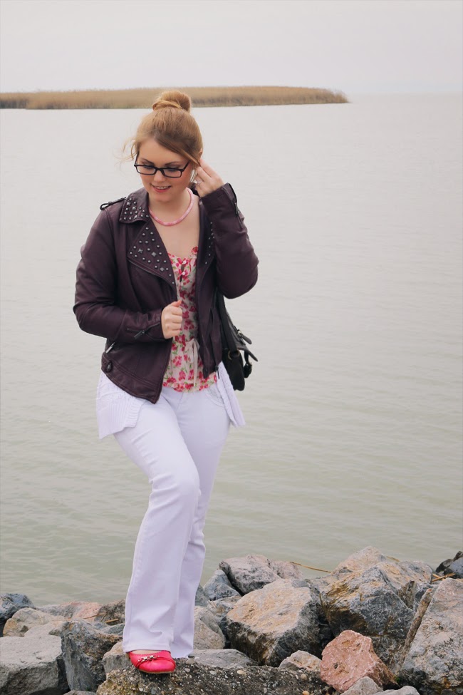 Top: Abercrombie & Fitch, Hose: Esprit (aktuell), Jäckchen: aus Valencia, „Leder“jacke: Primark, Schuhe: Rosa Shoes, Tasche: Ernsting’s Family, Schmuck: Geschenke, aus dem Urlaub