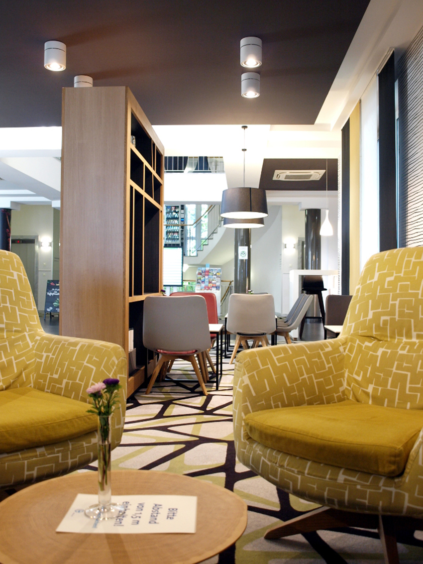 Ich gehe in der liebevoll gestalteten Lobby auf Entdeckungstour und bestaune den gekonnten Stilmix von dunklem Leder und Plüschsofa mit verspielten Kissen, die Luftigkeit des Raums und seine privaten Ecken, lichtdurchflutet und doch kein bisschen grell. Fast ein bisschen wie ein hippes Einrichtungshaus, oder die gemütliche Homestory in einem Hochglanzmagazin, gepaart mit viel Infomaterial und genug Platz, um nicht nur dem Wunsch nach Abstand nachzukommen, sondern auch um hier zu entspannen.