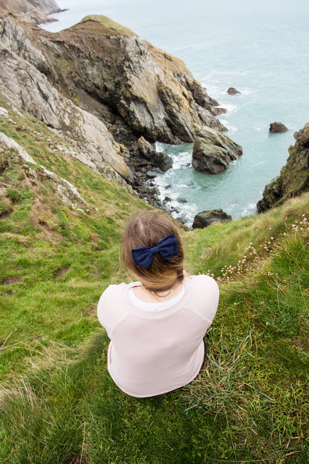 einen Ehrenplatz bekommen. Wir sind – nachdem wir schon gefühlt 100 Fotos gemacht haben – eine sehr, sehr steile und schmale Stiege an den Klippen entlang zur Bucht geklettert. Es war sehr rutschig, deshalb empfehlen sich hier gute Schuhe. Überhaupt sollte man nicht ohne Schirm, wasserfeste Schuhe und warme Kleidung nach Dublin reisen – auch wenn es um 10°C wärmer war, als bei uns in Wien. Der Gentleman ist sogar im Meer geschwommen, während ich die Umgebung erkundet habe.