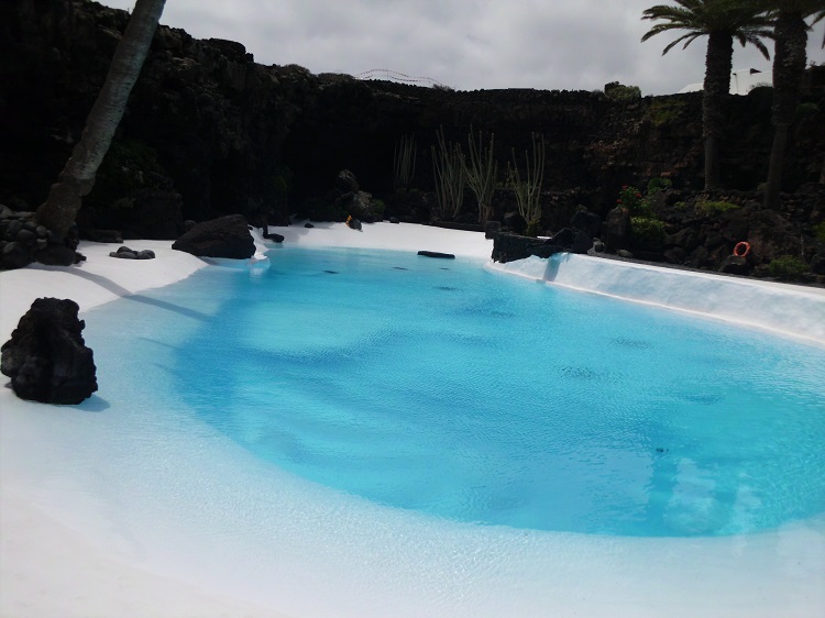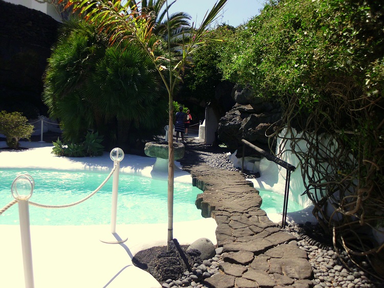 In einer Lavahöhle hat Manrique hier eine ganz besondere Attraktion geschaffen. Unten in der Grotte befindet sich ein Salzwassersee in dem einzigartige Mönchskrebse leben. Weiter oben befindet sich ein Restaurant und kommt man aus der Grotte fühlt man sich wie im Paradies. Ein weißes Becken mit klarem, türkisfarbenem Wasser und einer großen Palme haben diese Kraft.