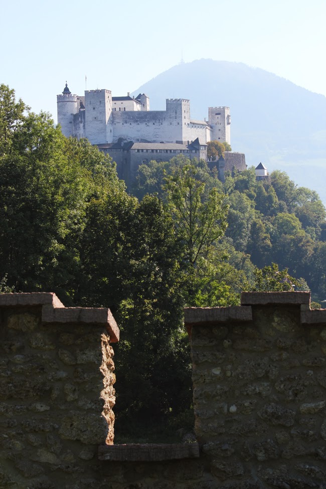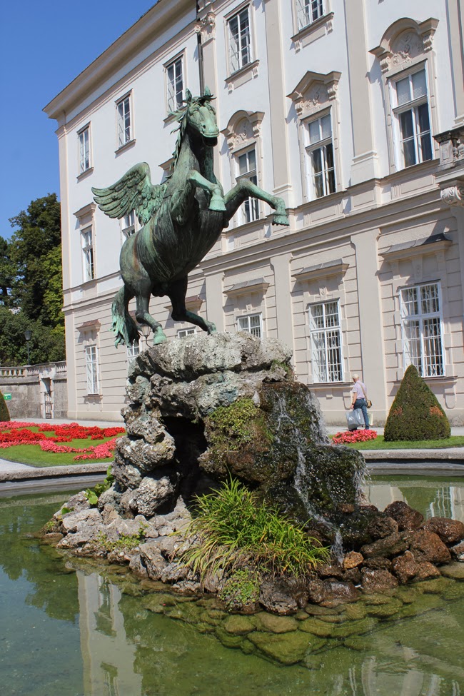 Über den Mönchsberg ging es dann zu Fuß weiter zur Festung Hohensalzburg. Die Festung ist mit über 7.000 m² bebauter Fläche (einschließlich der Basteien über 14.000 m²) eine der größten Burgen Europas und auch dort hat man einen tollen Ausblick auf die Stadt. Die Räumlichkeiten bzw. Ausstellungen in den Räumen sind auch ganz sehenswert. Mit der Standseilbahn ging es dann wieder runter, direkt in die Altstadt. Von dort ging es dann nach einem schnellen Mittagessen am Marktplatz (Wurstsemmel und Cola im Stehen… hab ja schon erwähnt, das Essen in Salzburg eher schwierig ist) weiter zum Schloss Mirabell mit dem wunderschönen Mirabellgarten.