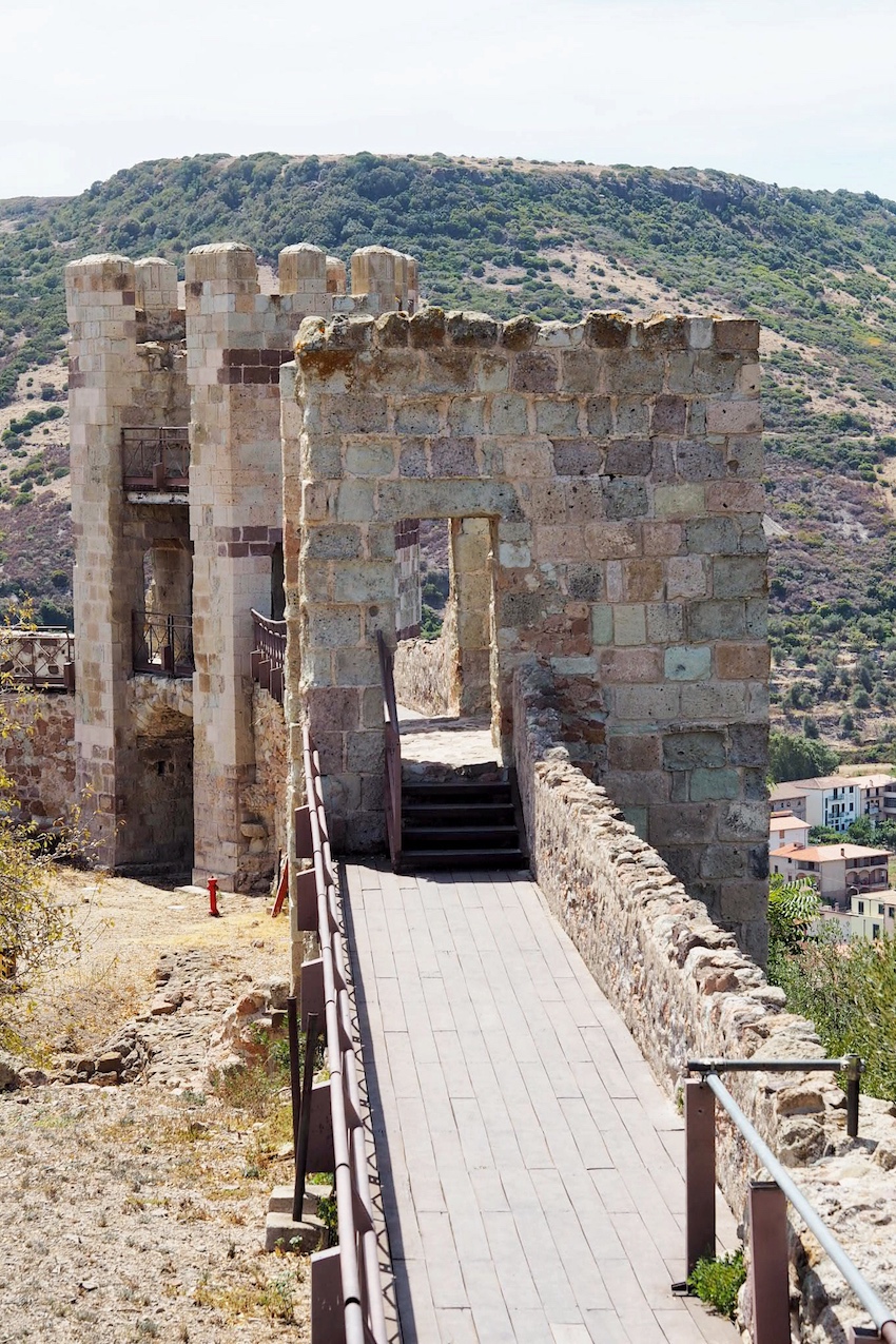 | Blick auf die Burgruine in Bosa |
