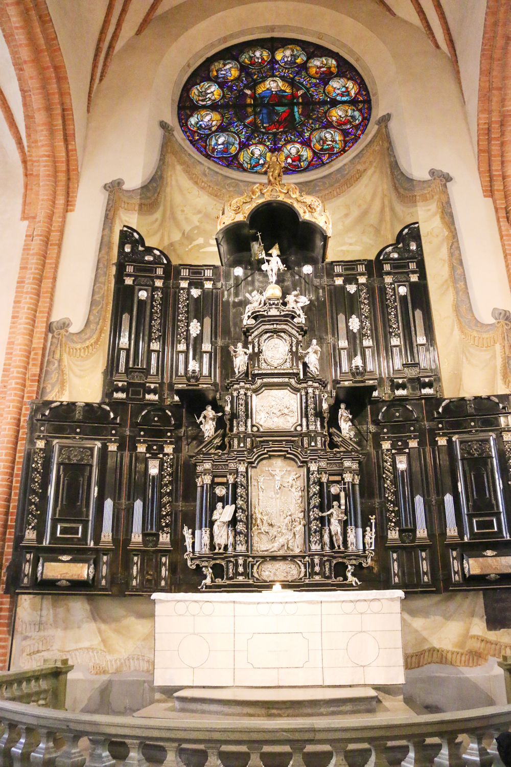 In Gamla Stan befindet sich auch die Sankt Nikolai kyrka, also die Domkirche Stockholms, die vor allem wegen des schwarzen Altars bekannt ist. Der aus Ebenholz gemachte Altar ist ein Triptychon und wird wegen seiner Silberreliefs gerne als Silberaltar bezeichnet. Wenn ihr also durch die Altstadt lauft und an der Kirche vorbei kommt, werft auf alle Fälle einen Blick rein!