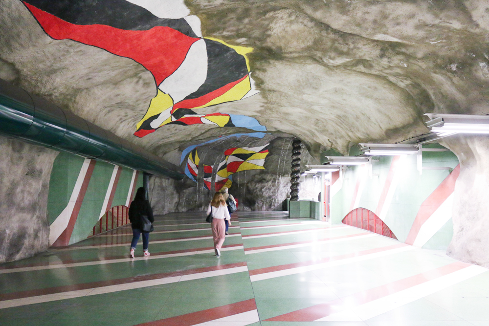Um die schwedische U-Bahn kommt man wohl kaum drumherum und ich nehme an, jeder wird bei seiner Stockholmreise einmal in die U-Bahn steigen. Wenn ihr an der Station Rådhuset, Kungsträdgården, T-Centrale, oder einigen anderen vorbeikommt, kann sogar U-Bahnfahren richtig Spaß machen, da diese Stationen von nationalen Künstlern richtig schön gestaltet wurden.