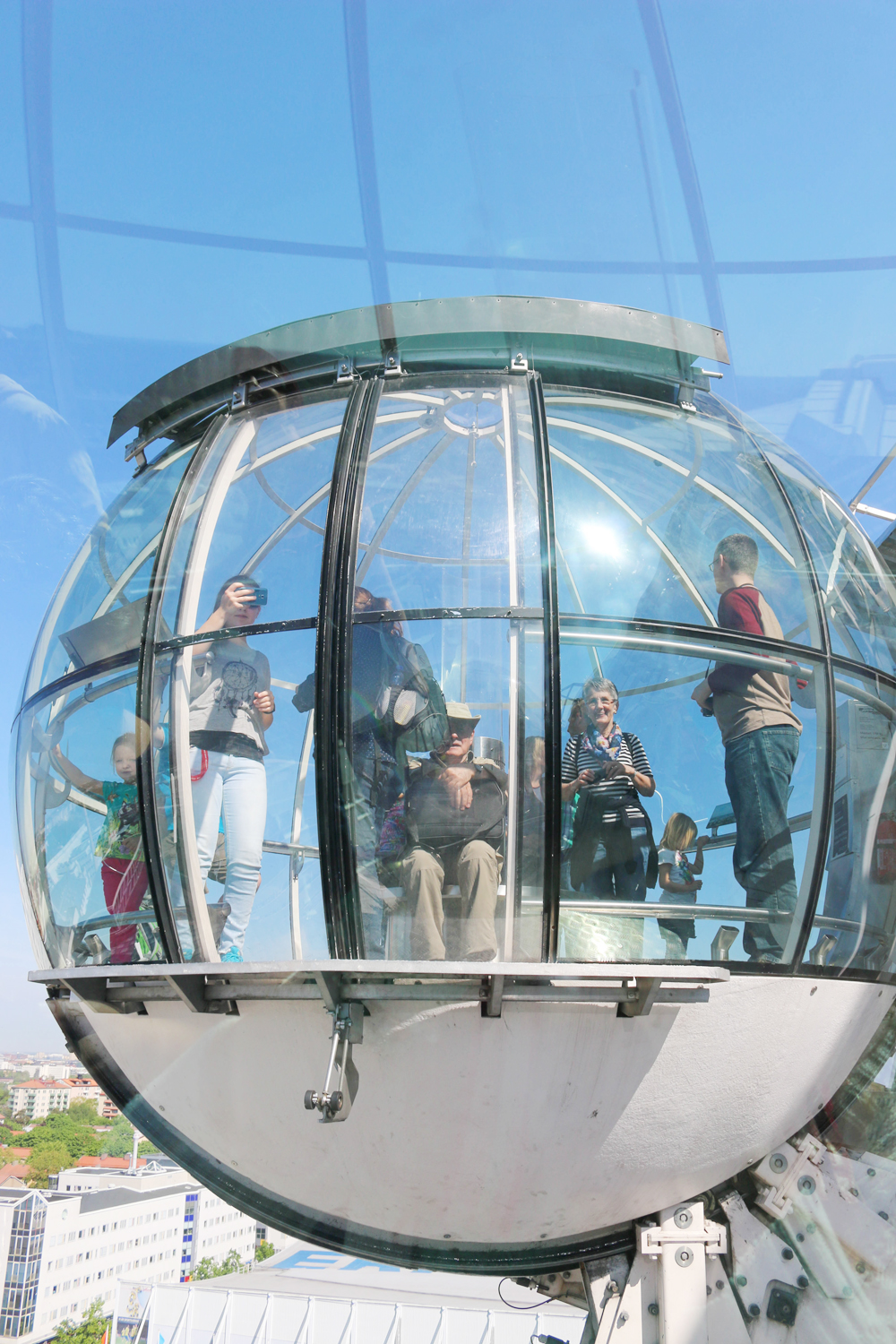 Wer Stockholm gerne von oben sehen möchte und keine Höhenangst hat, der sollte unbedingt beim SkyView, einem gläsernen Fahrstuhl, vorbeischauen. Der SkyView besteht aus zwei Glasgondeln, die jeweils Platz für 16 Personen bieten und auf Schienen, die auf der Fassade des Ericsson Globe angebracht sind, in schwindelerregende Höhe fahren. Die Fahrt dauert einige Minuten und geht bis hinauf auf den höchsten Punkt des Globen, was einer Höhe von 130 Metern entspricht. Ich empfehle euch auf alle Fälle gleich in der Früh, noch vorm eigentlichen Einlass, dort zu sein, oder vorab im Internet zu reservieren, da es sonst zu längeren Wartezeiten kommt.