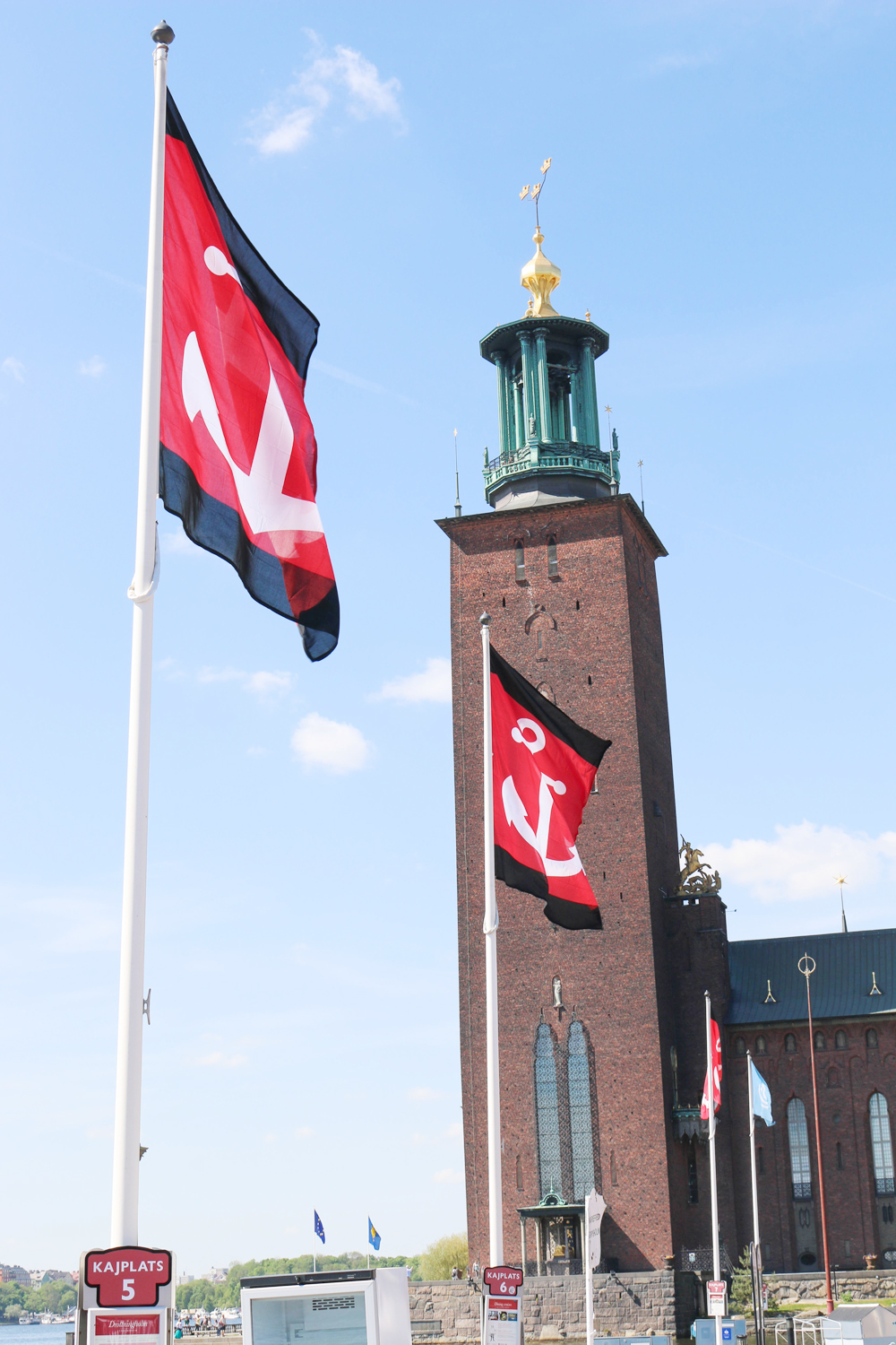Das Rathaus liegt am südöstlichen Spitz der Insel Kungsholmen und ist dank des 106 Meter hohen Turms auch kaum zu verfehlen. Wir haben es leider nicht in die Innenräume des Stadshus geschafft, aber auch der Innenhof und der Ausblick hinter dem Rathaus auf den Fluss und die Altstadt sind sehenswert. Außerdem ist dort Anlegepunkt diverser Bootstouren, wie etwa der Tour zum Schloss Drottningholm.