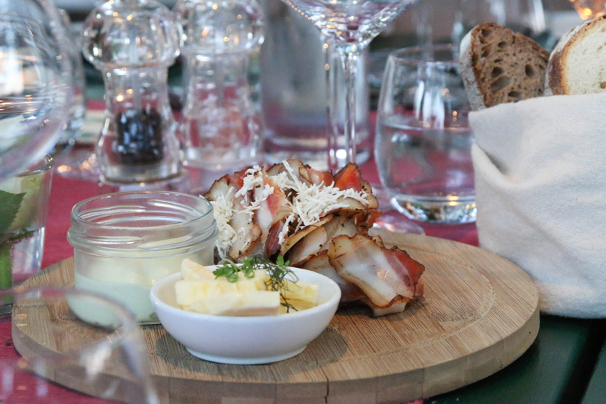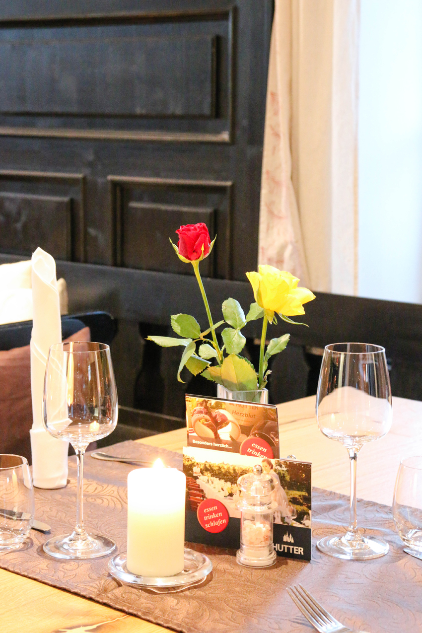 Auch wir konnten den Ausblick, wenn auch nicht beim Frühstück, sondern beim Abendessen genießen. Im Hutter erwartet einem gehobene österreichische Wirtshausküche aus der Region. Wirklich alle Speisen trafen genau meinen Geschmack und bereits vor dem Nachtisch war ich fast am Platzen. Doch dann kam ein köstlich warmer Schokokuchen mit flüssigem Kern, dem ich natürlich nicht widerstehen konnte. Ich habe wirklich schon oft sehr lecker gegessen, aber dieses Menü aus cremiger Suppe, Fisch mit Risotto und schokoladigem Abschluss war eines der besten Speisen der letzten Zeit!