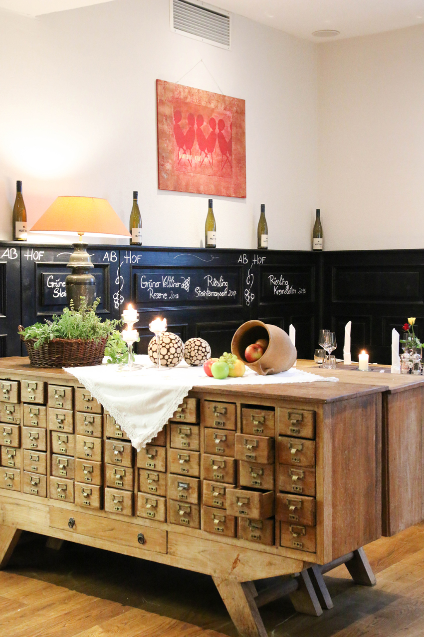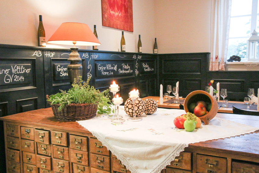 Bereits 1890 wurde das Gut gegründet, aber erst seit April 2012 erstrahlt es Dank Neuübernahme in seinem jetzigen Glanz. Die charmante Gastgeberin führte uns durch die 14 tollen Zimmer und Apartments, und ich weiß jetzt schon: Sollte ich mal in der Region sein, wird definitiv dort ein Zimmer gebucht! Auf der Anhöhe des Kremser Weinzierlberges, eingebettet in weitläufige Weingärten und mit einem herrlichen Blick auf die Stadt Krems und das Stift Göttweig hat man nämlich schon beim Aufstehen und auf dem Weg zum Frühstücksbuffet einen herrlichen Ausblick!