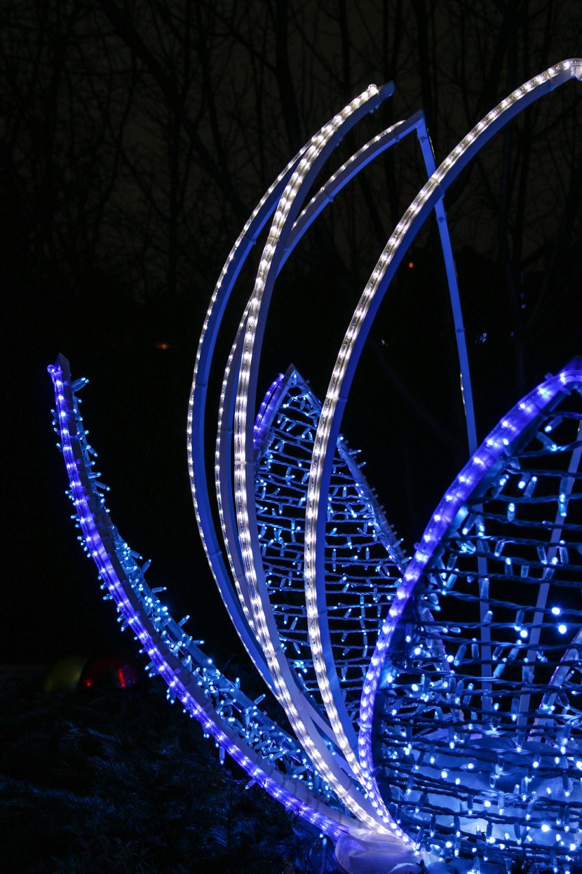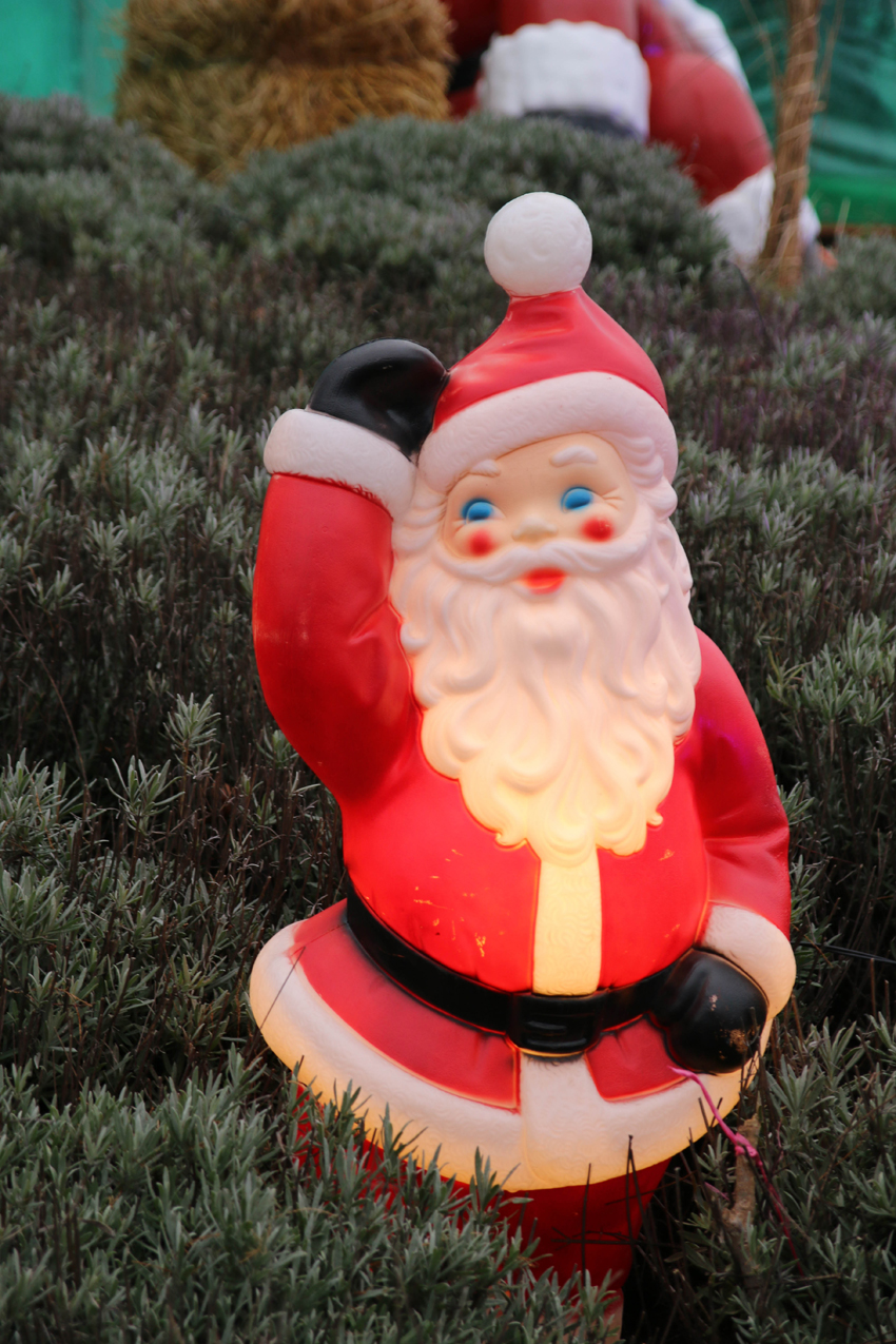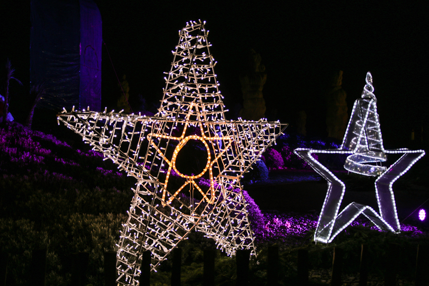 Vom Parkplatz bzw. der Straßenbahnhaltestelle aus führt ein nett beleuchteter Weg in die Blumengärten, die ebenfalls schön dekoriert sind. Wir kamen zuerst am Themenbereich „Natürlich Christkindl“ vorbei, wo vorrangig Bio-Schmankerln und regionale Köstlichkeiten angeboten werden. So findet man dort Apfelmost, Himbeeressig, ein exklusives Angebot an Kürbiskern-Produkten, Edelbränden, Bio-Honig, aber auch Delikatessen aus Südtirol und vieles mehr.