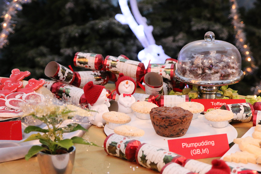 Weiter ging es in die Weihnachtsausstellung „Süße Weihnachtszeit“, wo eines der Gewächshäuser liebevoll zum Thema Weihnachtsköstlichkeiten dekoriert wurde. Man ist quasi auf einer kulinarischen Reise durch ganz Europa: Von Lebkuchen, Kletzenbrot und Weihnachtsgewürzen bis hin zu modernen Süßigkeiten wie Donuts oder Cupcakes findet man hier alles. Im benachbarten Gewächshaus gibt es neben ein paar Charity-Ständen auch ein musikalisches Adventprogramm.